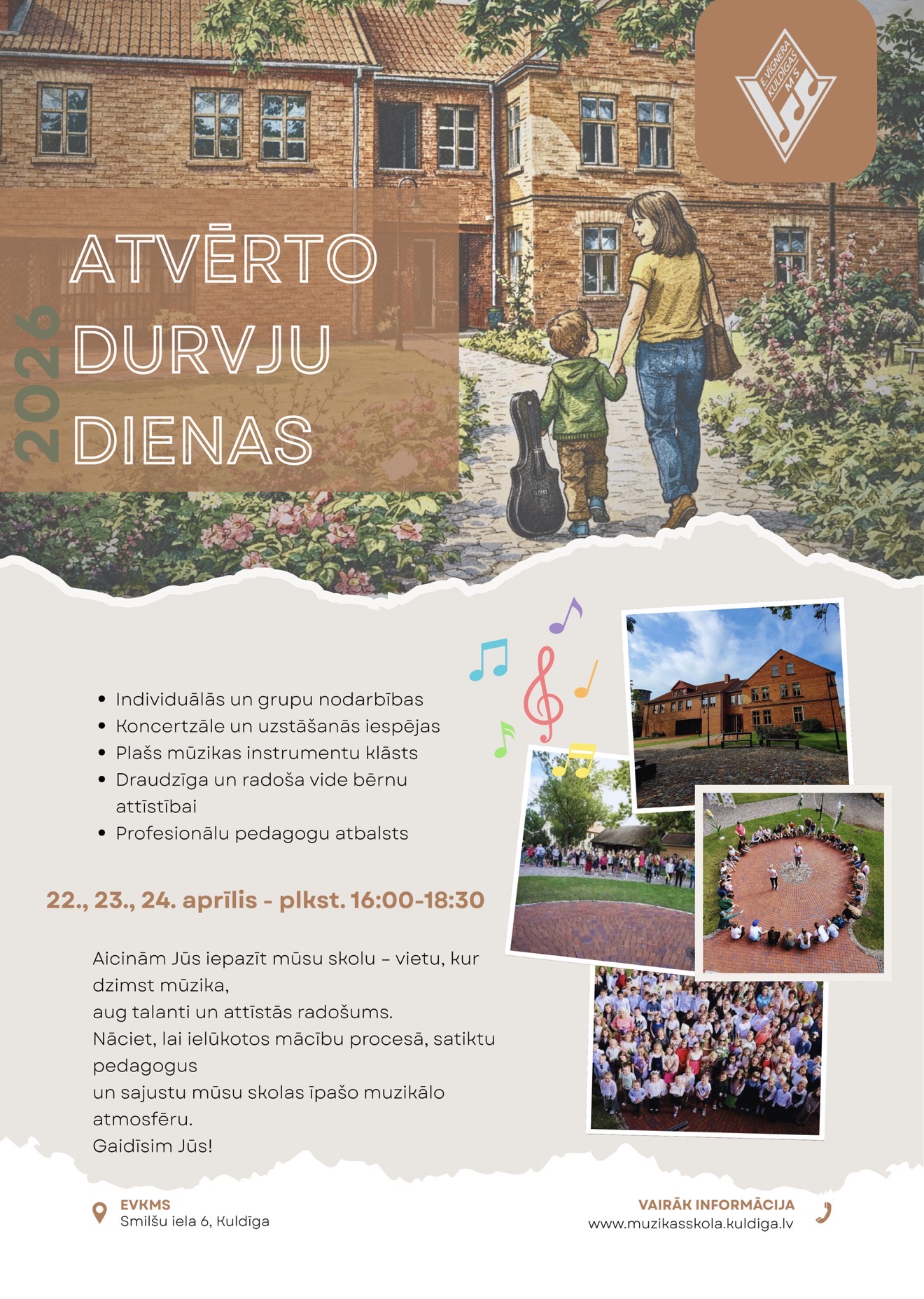 Ernesta Vīgnera Kuldīgas Mūzikas skola direktores v.i.: Amanda Gertnere Adrese: Smilšu ielā 6, Kuldīga, Kuldīgas novads, LV-3301 Tālrunis: +371 63322114 E-pasts: muzikask@kuldiga.lv